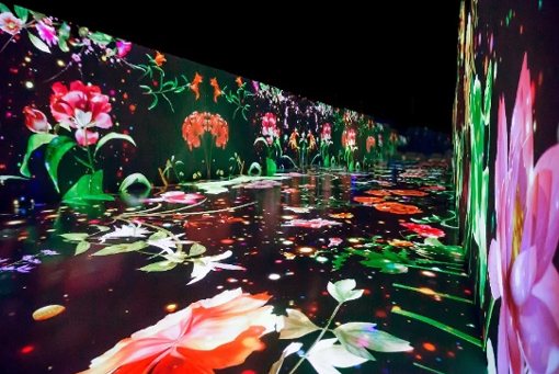 沉醉不(bù)知(zhī)歸路(lù),誤入百花(huā)深處,南(nán)宋傳世長(cháng)軸《百花(huā)圖卷》,清雅絕倫,美(měi)輪♠美(měi)奂。“百花(huā)深處”取其形、塑其神,創造出一(yī)個(gè)花(huā)莖 之下(xià)的(de)意趣世界。愛(ài)普生(shēng)高(gāo)亮(liàng)度激光(gu≤āng)工(gōng)程投影(yǐng)機(jī)打造萬花(huā)景緻,遊走其中,觸碰到(dào)的(de)花(huā)朵産生(shēng)粒子(zǐ)流光(guāng)、飛(fēi)蝶、綻放(fàng)和(hé)花(huā)瓣飄散等多(duō)種效果,觀衆通(tōng)過視(shì)角的(de)變換即可(kě)體(tǐ)驗“人(rén)在畫(huà)中走,花(huαā)于眼前遊”的(de)别樣趣味。