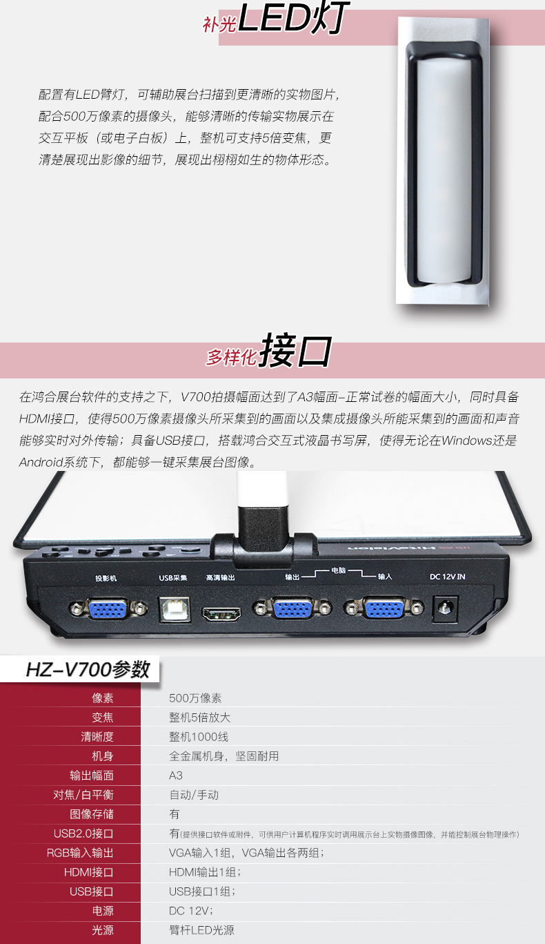 鴻合(HiteVision)實物(wù)視(shì)頻(pín)展台 V700