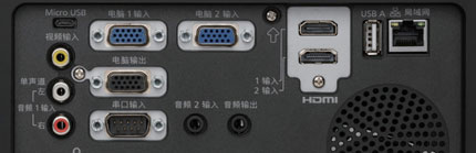 - 記憶卡浏覽功能(néng) 無電(diàn)腦(nǎo)投影(yǐng) — 隻需将存儲有(yǒu)圖片的(de)USB記憶卡插入投影(yǐ≠ng)機(jī)端口即可(kě)直接投影(yǐng)。 - USB連接線顯示功能(néng) 無需安裝任何軟件(jiàn),隻需将USB連接線插入投影(yǐng)機(jī)端口Mircro USB,•投影(yǐng)機(jī)即可(kě)自(zì)動識别并進行(xíng)圖像和(hé)聲音(yīn)的(de)投↓影(yǐng)。 - 包含HDMI輸入端口豐富端口設計(jì) 豐富的(de)端口設計(jì)支持廣泛的(de)系統應用(yòng),包含2個(gè)HDMI輸入端口和(hé)與電(diàn)腦(nǎo)連接的(de)兩個(gè)RGB D-S≠ub端口。讓連接更加無拘無束。