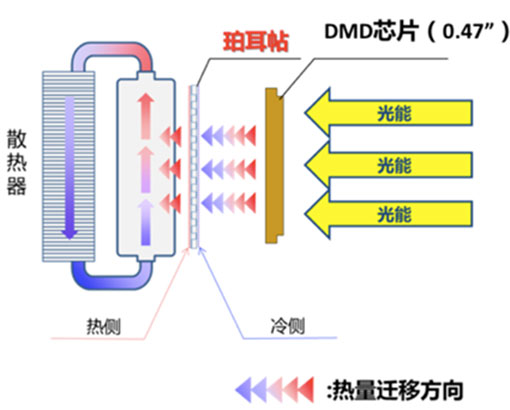 此外(wài),針對(duì)DMD芯片的(de)散熱(rè)問(wèn)題,CN5550QL特别采用(yòng)了(le)全新的(de )珀耳帖散熱(rè)技(jì)術(shù),通(tōng)過溫差電(diàn)效應更快(kuài)吸收DMD芯片熱(rè)量,一(yī)對(duì)一(yī)輔助芯片加™速散熱(rè),散熱(rè)效率更高(gāo)。