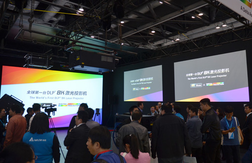 看(kàn)見(jiàn)新”視(shì)”界,2018年(nián)4月(yuè)11日(rì),Digital Projection在北(běi)京InfoCom↑m期間(jiān),率先發布并展出全球首台超高(gāo)亮(liàng)度8K激光(guāng)投影(yǐng)機(jī)—INSIGH×T Laser 8K,顯示影(yǐng)像像素3300萬,相(xiàng)當于4K顯示的(de)4倍$。産品亮(liàng)度達到(dào)25000流明(míng),高(gāo)技(jì)術(shù)、高(gāo)規格帶來(lái)的(de)現(&xiàn)場(chǎng)顯示效果十分(fēn)驚豔。