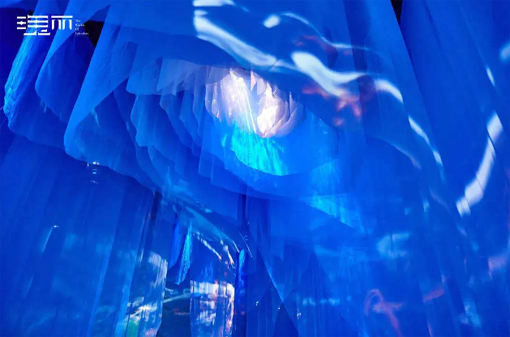 步入瑰麗(lì)·猶在境,光(guāng)影(yǐng)如(rú)古畫(huà)卷軸徐徐展開(kāi),移步異景,行(xíng)走于山(shān)水(shuǐ)間(jiānσ),雲霞浮動丘巒疊嶂。“雲軸入境”用(yòng)激光(guāng)、投影(yǐng)機(j±ī)和(hé)氣霧機(jī),雕刻出一(yī)幅立體(tǐ)光(guāng)影(yǐng)卷軸,行(xíng)走其中,感受古人(rén)對(du>ì)天地(dì)、自(zì)然的(de)思考。