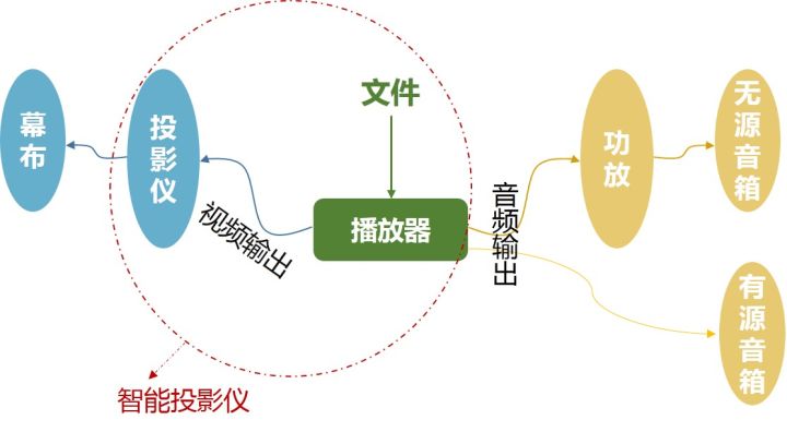 今天我們先來(lái)說(shuō)上(shàng)面這(zhè)張圖的(de)左邊部分(fēn)——播放(fàng)器(qì)、投影(yǐ☆ng)儀、幕布。