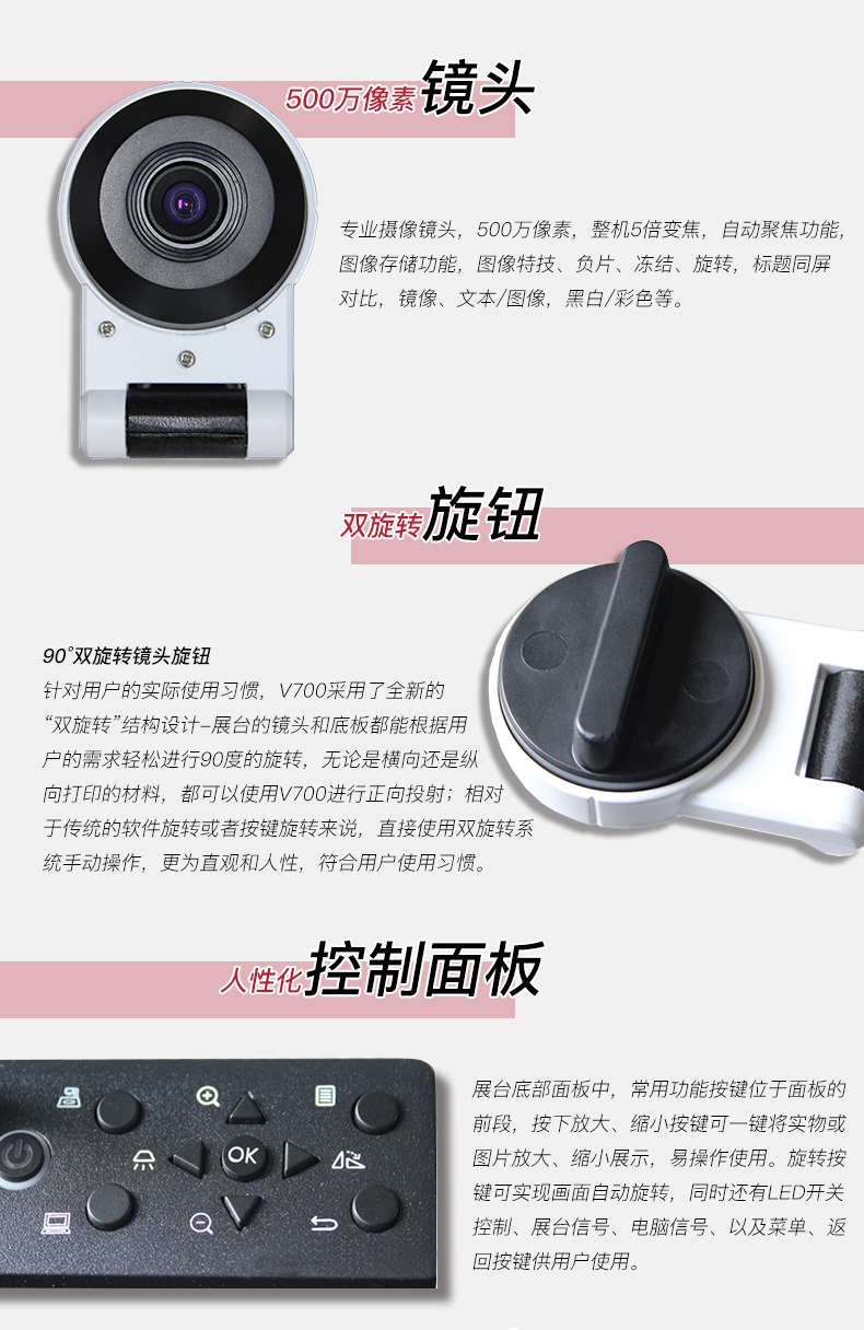 鴻合(HiteVision)實物(wù)視(shì)頻(pín)展台 智能(néng)高(gāo)清視(shì)頻(pín)展台& 多(duō)媒體(tǐ)教學實物(wù)投影(yǐng)儀 V700(500萬像素 帶HDMI和(hé)VGA接口)